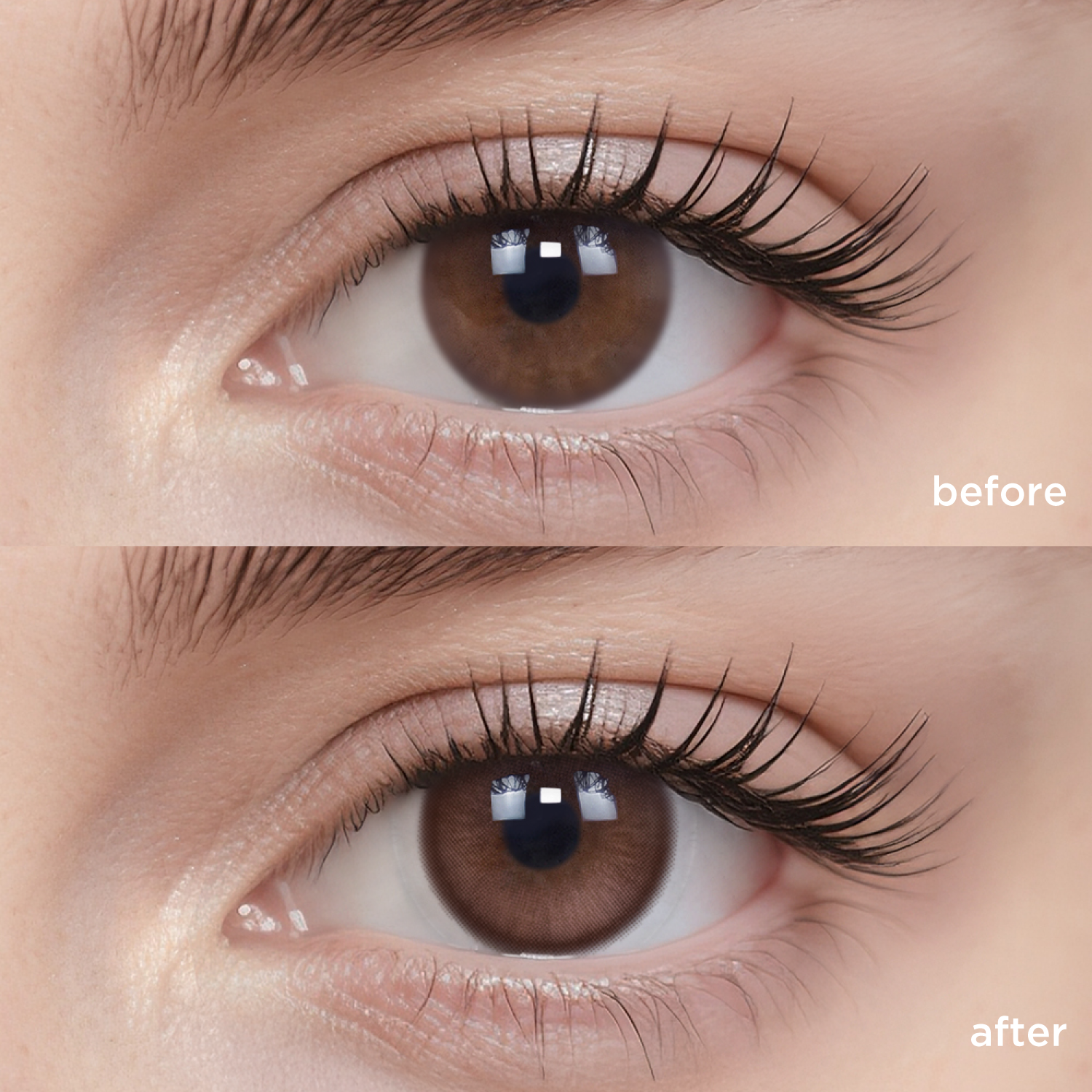 The actual wearing effect might vary mainly due to the difference in original eye color and iris pattern. Other factors such as lighting, camera filter, eye shape, etc., might cause differences as well.